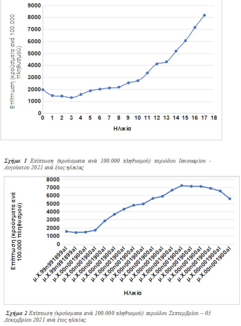 Στη σχετική ανακοίνωση αναφέρεται: Κατά την πρώτη χρονική περίοδο του έτους που διανύσαμε (Ιανουάριος 2021- Αύγουστος 2021) παρατηρήθηκε αύξηση της επίπτωσης της νόσου COVID-19 ανάλογα με την ηλικία των παιδιών, αύξηση η οποία αφορά πάντα τα παιδιά άνω των 4 ετών. Τον Ιούλιο του 2021 το εμβόλιο Pfizer-BioNTech κατά του κορονοϊού εγκρίθηκε και άρχισε να χορηγείται στη χώρα μας για τα παιδιά και εφήβους στην ηλικιακή ομάδα των 12-17 ετών. Έκτοτε παρατηρήθηκε ότι τη χρονική περίοδο Σεπτεμβρίου - 05 Δεκεμβρίου 2021, με τα μέχρι σήμερα διαθέσιμα δεδομένα, η επίπτωση της νόσου COVID-19 εμφανίζει πτώση στις ηλικιακές ομάδες των παιδιών άνω των 12 ετών, ανά έτος ηλικίας, περίοδος που συμπίπτει με την έναρξη του εμβολιασμού αυτών των ηλικιακών ομάδων.