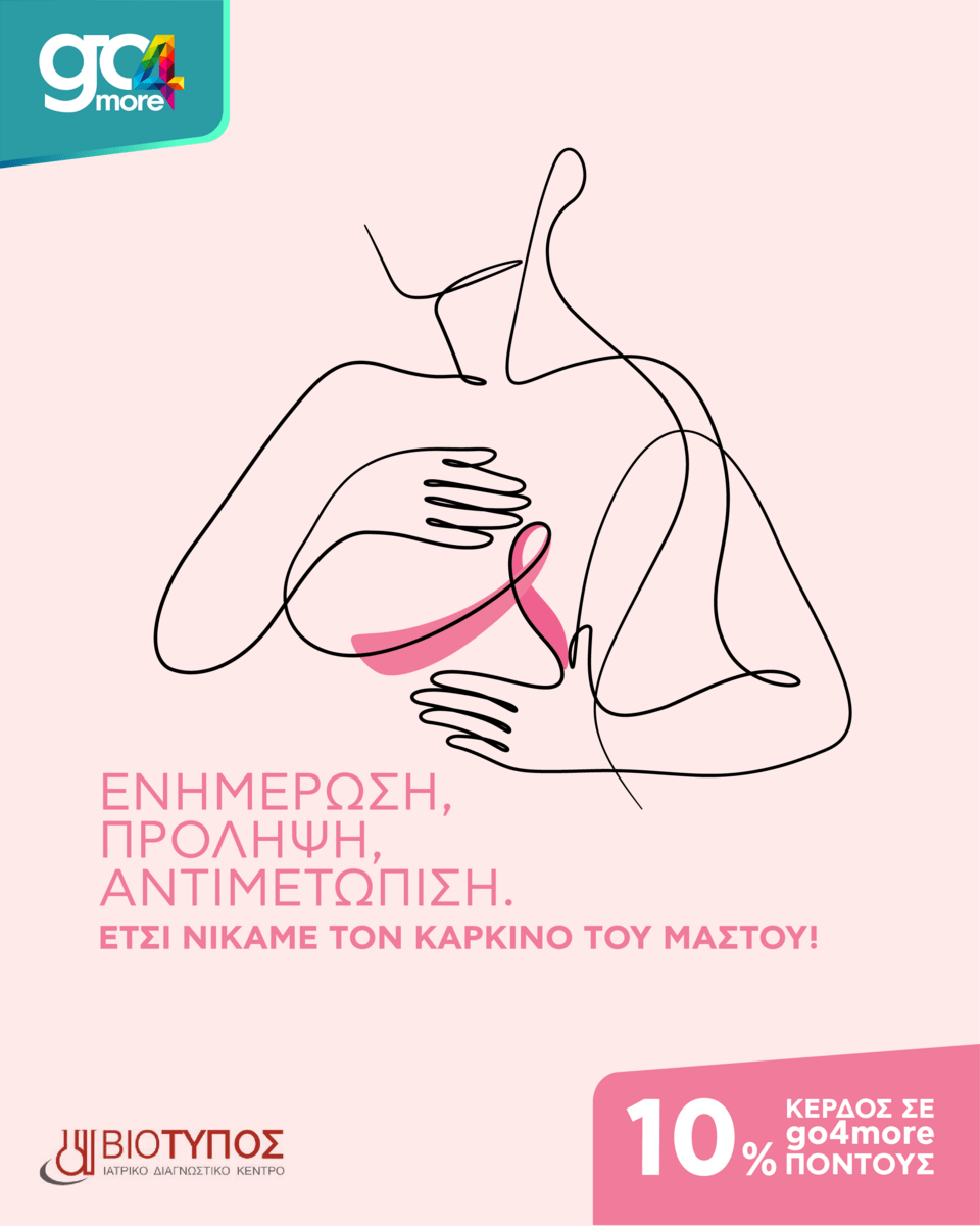 Σε αυτό το πλαίσιο, το πρόγραμμα επιβράβευσης go4more της Εθνικής Τράπεζας και τα Ιατρικά Διαγνωστικά Κέντρα Βιότυπος μάς υπενθυμίζουν τη σπουδαιότητα της πρόληψης και προσφέρουν στα μέλη του προγράμματος ένα σημαντικό κίνητρο: συγκεκριμένα, με τη χρήση των καρτών της Εθνικής Τράπεζας κερδίζετε 10% σε go4more πόντους στο κόστος των διαγνωστικών εξετάσεων που θα πραγματοποιήσετε έως και 30 Νοεμβρίου. Έτσι, μπορείτε να κάνετε προληπτικές εξετάσεις και να κερδίσετε πόντους που εξαργυρώνονται σε περισσότερες από 7.500 συνεργαζόμενες με το πρόγραμμα επιχειρήσεις σε όλη την Ελλάδα.