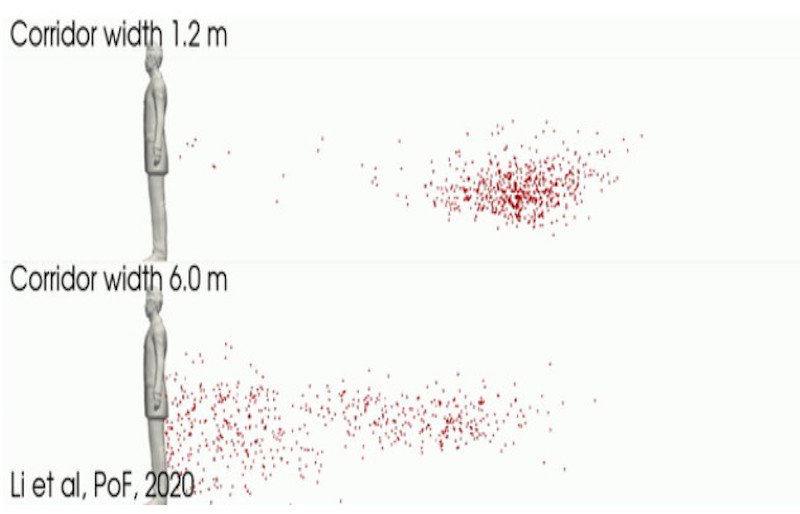 Τα σωματίδια του κορωνοϊού που εκπέμπονται από το ακάλυπτο στόμα ενός φορέα μέσα σε στενούς, περίκλειστους χώρους, όπως οι διάδρομοι, μπορούν να παραμείνουν στον αέρα για αρκετά δευτερόλεπτα, προειδοποιεί μια νέα μελέτη.
