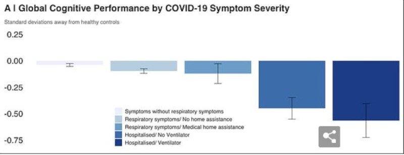 Ο Άνταμ Χάμπσιρ του Imperial College του Λονδίνου, βασικός συντάκτης της μελέτης, που δεν έχει ακόμη αξιολογηθεί από άλλες ομάδες επιστημόνων, σημείωσε ότι τα «σοκαριστικά», όπως τα χαρακτήρισε, ευρήματα δεν αφορούν μόνον σε ασθενείς του κορωνοϊού που κατέληξαν στο νοσοκομείο. Ορισμένοι εξ΄ όσων διαγνώστηκαν θετικοί, αλλά δεν αντιμετώπισαν προβλήματα δύσπνοιας, διαπίστωσαν πτώση των γνωστικών τους λειτουργειών και μετά την ανάρρωσή τους. Όσοι ανέρρωσαν στο σπίτι είδαν το δείκτη ευφυίας τους να πέφτει κατά τέσσερις μονάδες, όσο θα έχαναν δηλαδή σε διάστημα γήρανσης πέντε ετών.