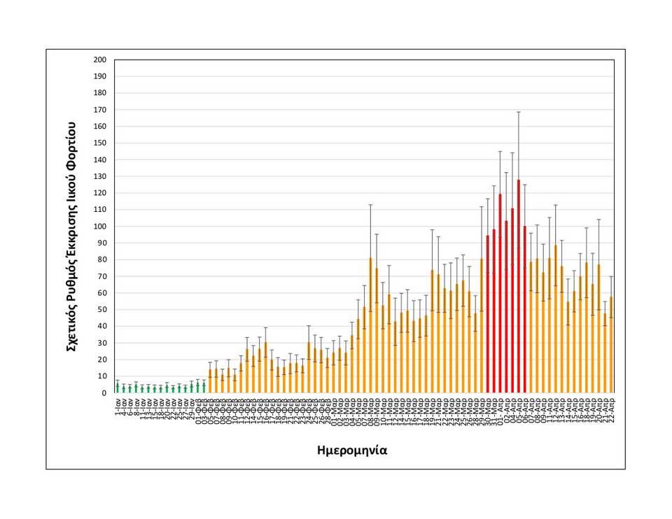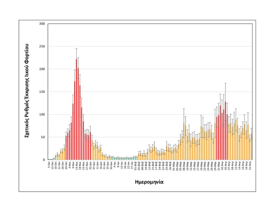 Συγκεκριμένα, στα δείγματα που λαμβάνονται καθημερινά στην είσοδο της Εγκατάστασης Επεξεργασίας Λυμάτων Θεσσαλονίκης, αναφορικά με τις εξορθολογισμένες τιμές σχετικής έκκρισης ιικού φορτίου, η μέση τιμή των δύο πιο πρόσφατων μετρήσεων, δηλαδή της Τετάρτης 21/04 και της Πέμπτης 22/04 είναι: