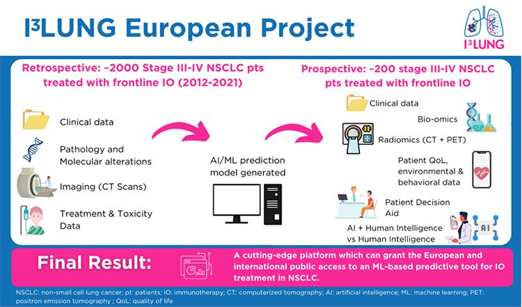 «Οι συνεργάτες του I3LUNG θα έχουν ένα χρονοδιάγραμμα 5 ετών και έναν προϋπολογισμό 10 εκατομμυρίων ευρώ για να μετατρέψουν την υπόθεση του έργου τους σε ένα χειροπιαστό εργαλείο και μια νέα κλινική πραγματικότητα. Από όσο γνωρίζουμε, το I3LUNG είναι η πρώτη πλατφόρμα Τεχνητής Νοημοσύνης που θα συμπεριλάβει δεδομένα από έναν τόσο σημαντικό αριθμό ασθενών τόσο με αναδρομικό (2.000) όσο και με προοπτικό (200) τρόπο, συμπεριλαμβανομένης μιας τεράστιας ποικιλίας πολυομικών δεδομένων. Το Ι3LUNG αποτελεί μια καινοτόμο και πολλά υποσχόμενη τεχνολογία που θα παρέχει απαντήσεις στην κλινική ανάγκη ενσωμάτωσης δεδομένων μεταφραστικής έρευνας και χρήσης τεχνητής νοημοσύνης.