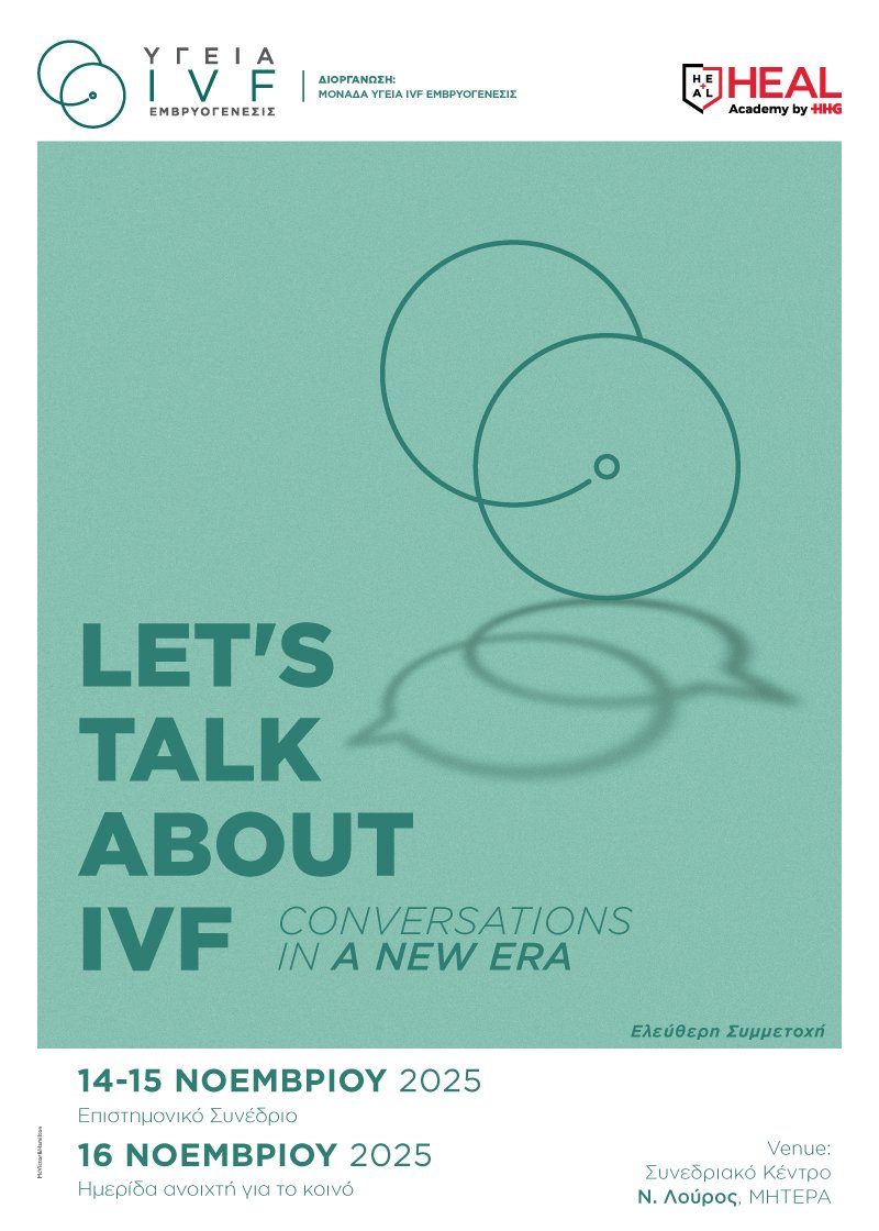 Η Μονάδα ΥΓΕΙΑ IVF Εμβρυογένεσις, σε συνεργασία με το Heal Academy, διοργανώνει ένα διαφορετικό και πρωτοποριακό συνέδριο για την εξωσωματική γονιμοποίηση με τίτλο «Let’s talk about IVF: Conversations in a New Era», που θα πραγματοποιηθεί στις 14-16 Νοεμβρίου 2025, στο Συνεδριακό Κέντρο «Ν. Λούρος» του Νοσοκομείου ΜΗΤΕΡΑ.