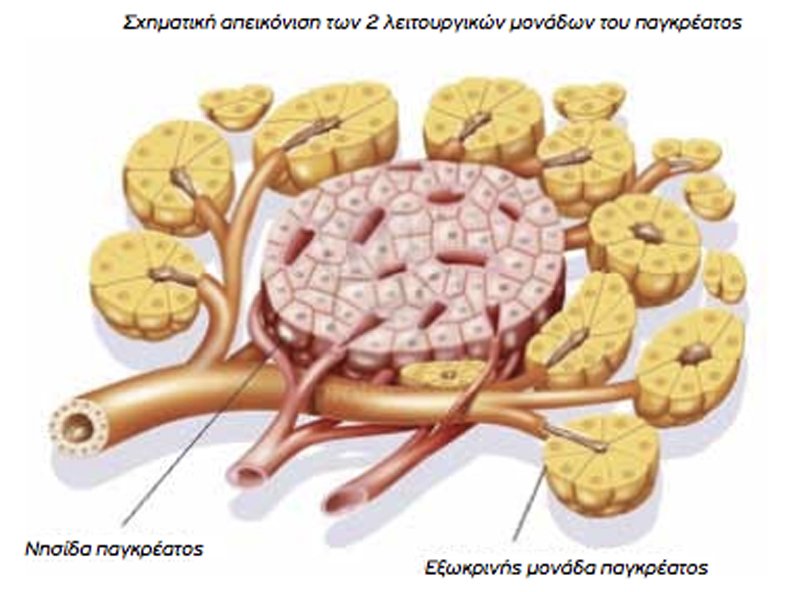 Το πάγκρεας είναι ένας μικτός αδένας με ενδοκρινή και εξωκρινή μοίρα.