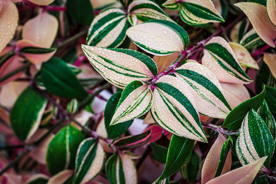 Η τραδεσκάντια ξεχωρίζει για τα φύλλα της σε αποχρώσεις του πράσινου, του βιολετί και του ασημί. Είναι μια πρωτότυπη επιλογή που αναπτύσσεται γρήγορα ακόμη και σε νερό και χάρη στο φύλλωμά της είναι ιδανική για ράφια και βιβλιοθήκες.