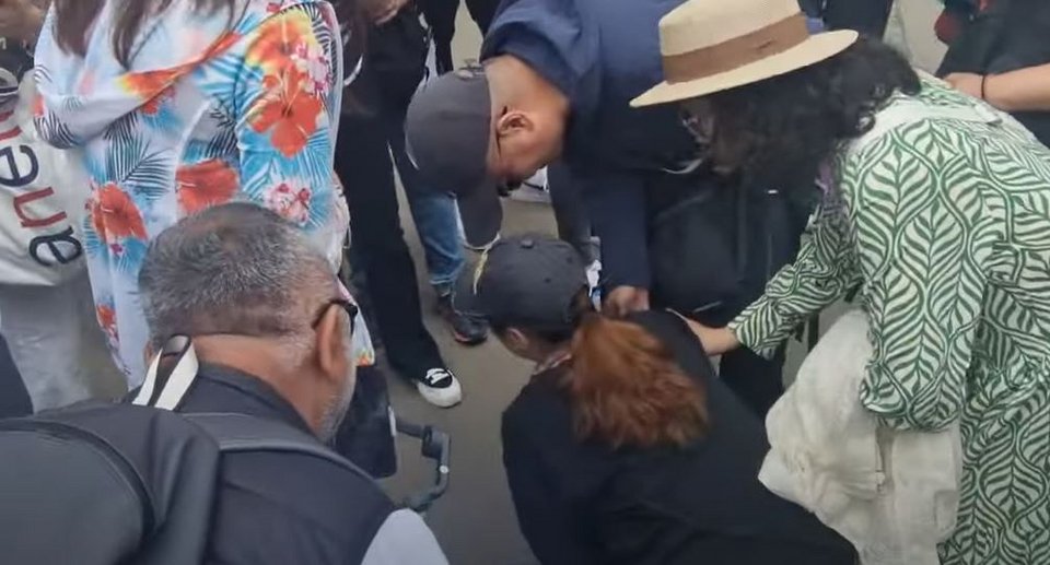 Σε ένα άλλο βίντεο, φαίνεται να κάνουν αέρα στη γυναίκα οι φίλοι της, ενώ στη συνέχεια, σε μια πρωτοφανή κίνηση, ο φρουρός του βασιλιά φαίνεται να χρησιμοποιεί το σπαθί του για να κάνει σήμα στον εικονολήπτη, πριν του πει: «Μπορείτε να πάτε να φωνάξετε τον αστυνομικό;».