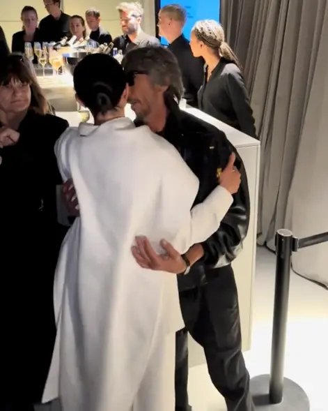 Κάποια στιγμή, η Μέγκαν αγκαλιάζει τον σχεδιαστή και τον φιλά στο δεξί μάγουλο και όταν πάνε να αλλάξουν μάγουλο, μπερδεύονται, με την μύτη της να χτυπά στα γυαλιά ηλίου του. Οι δυο τους εντούτοις αγκαλιάστηκαν και χαμογέλασαν στις κάμερες που περίμεναν να τους αποθανατίσουν.