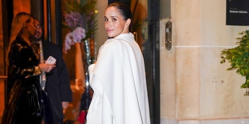 Η Μέγκαν Μαρκλ εντυπωσίασε με μία λευκή oversized κάπα, λευκό πουκάμισο με κουμπιά και παντελόνι σε ίσια γραμμή, τα οποία συνδύασε με μαύρες γόβες, ελάχιστο μακιγιάζ και λιτά κοσμήματα, αποπνέοντας μια αίσθηση ανεπιτήδευτης κομψότητας. Το λουκ ολοκλήρωσε με ένα χαμηλό κότσο.
