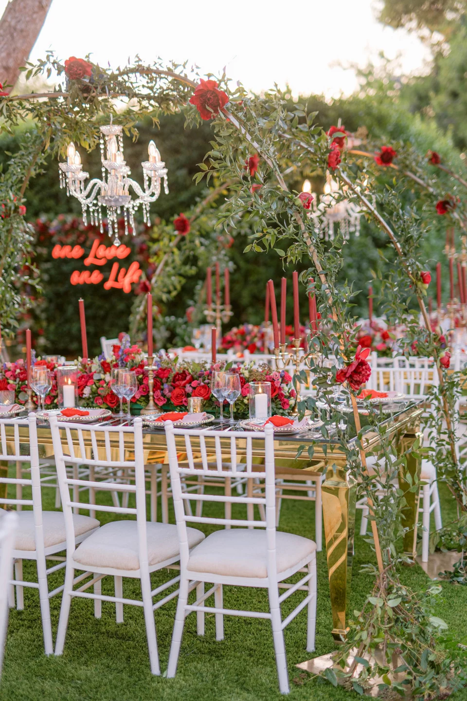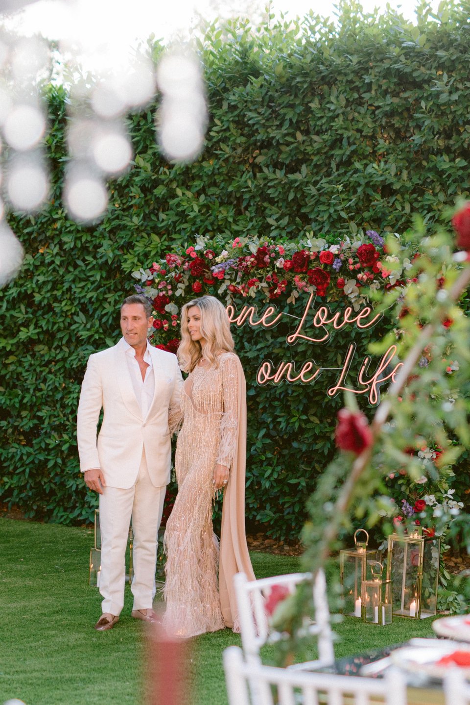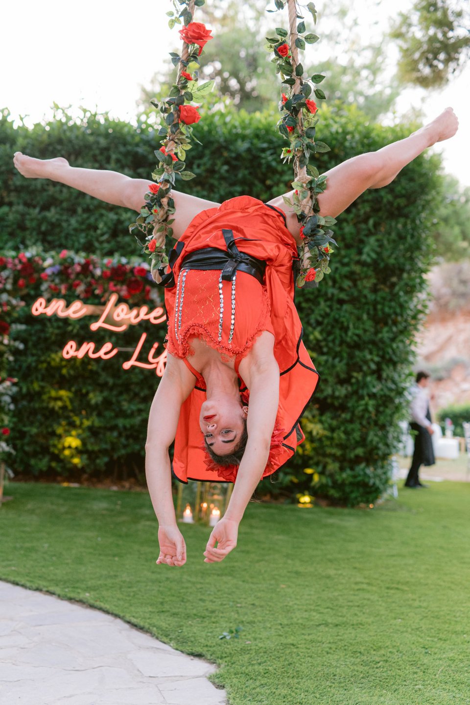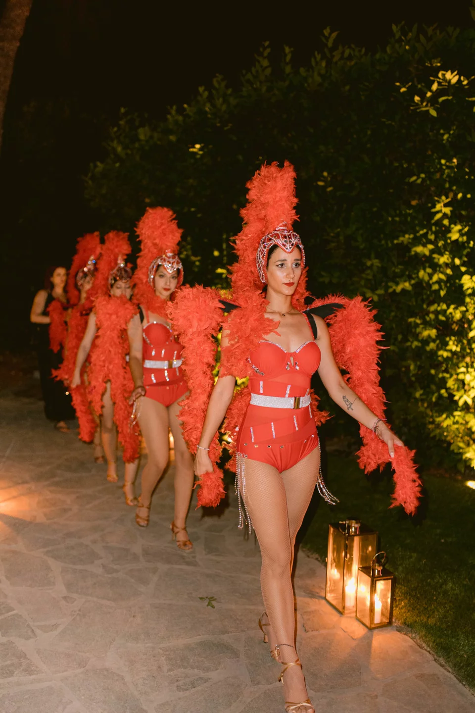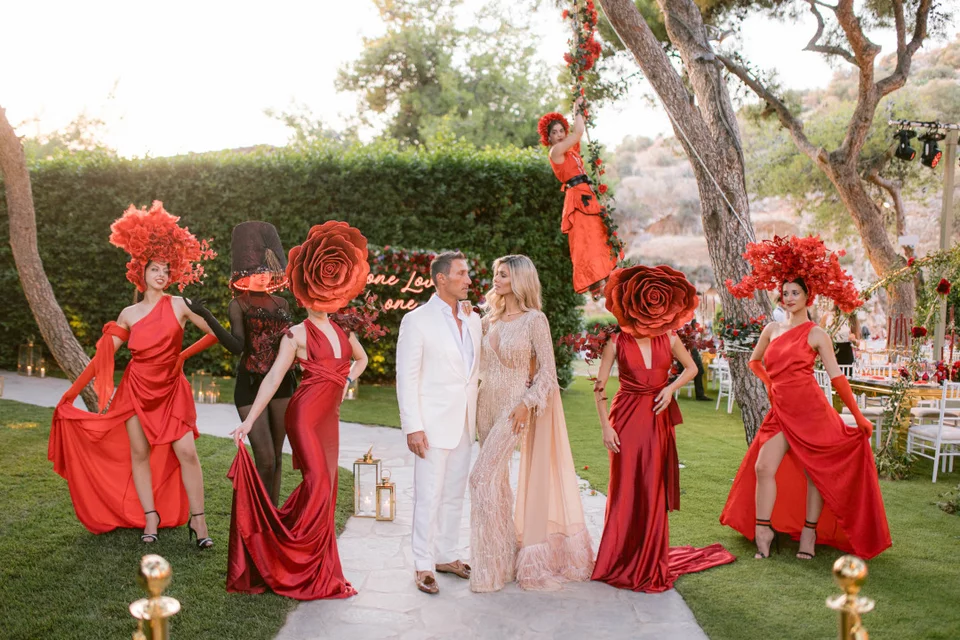 Το glamour party, με θέμα Moulin Rouge, μονοπώλησαν τα χορευτικά shows, το act συγχρονισμένης κολύμβησης αλλά και οι μουσικές επιλογές του ζευγαριού. Η γαλλική διακόσμηση παρέπεμπε σε μια άλλη εποχή, με την χλιδή και την πολυτέλεια να κυριαρχούν, ενώ τα χορευτικά shows θύμιζαν γαλλικό cabaret.