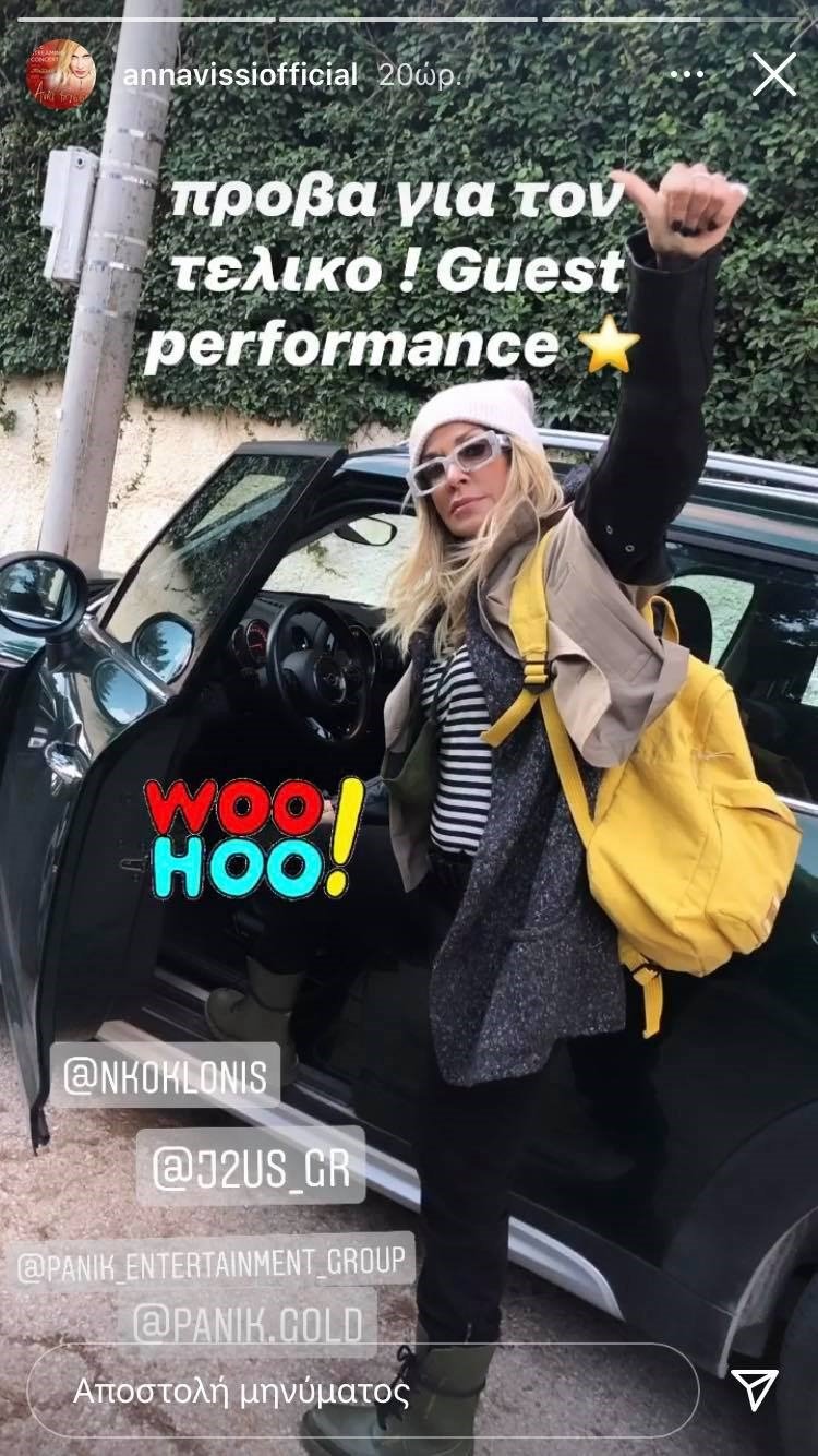 «Πρόβα για τον τελικό! Guest performance», έγραψε χαρακτηριστικά η Αννα Βίσση.