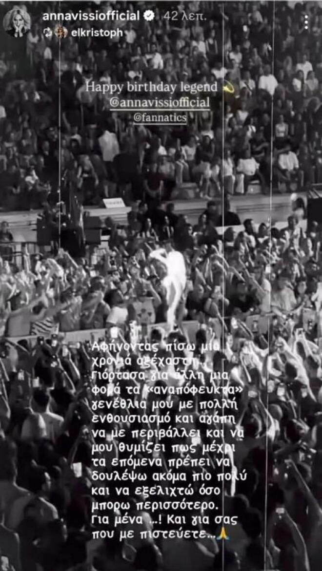 Λίγες ώρες αργότερα, τα ξημερώματα του Σαββάτου, η Άννα Βίσση θέλησε να μοιραστεί τα συναισθήματά της μέσα από τα Instagram Stories της.