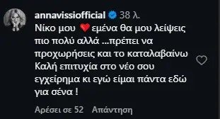 Τα σχόλια κάτω από την ανάρτησή του ήταν πολλά, ωστόσο αυτό που ξεχωρίζει δεν είναι άλλο από αυτό της ίδιας της Άννας Βίσση.