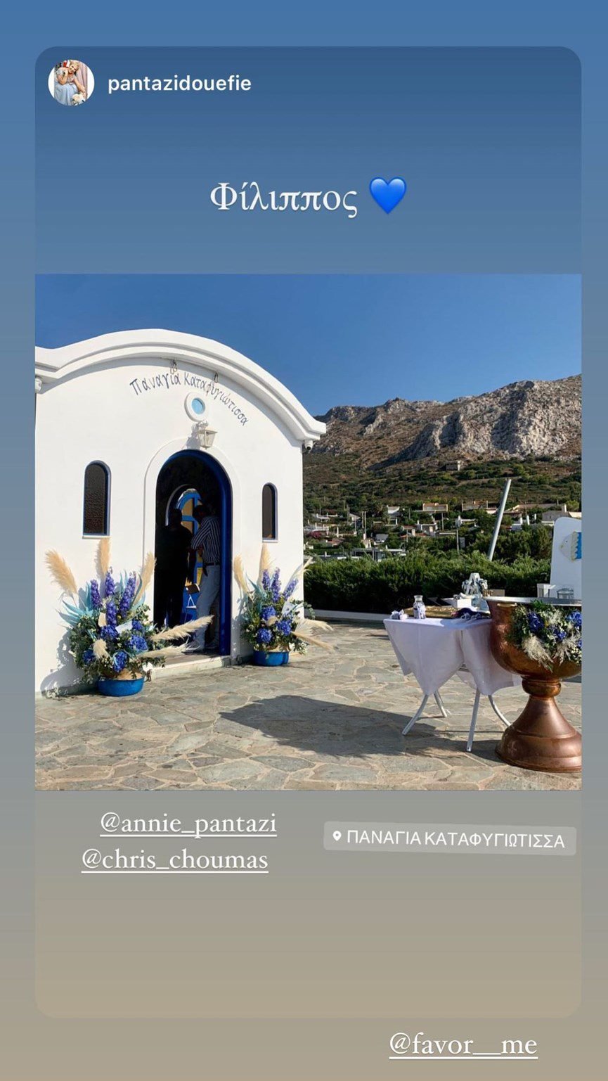 Στο πλευρό του ζευγαριού βρέθηκαν φίλοι και συγγενείς, όπως η αδερφή της Αννυ Πανταζή, Κλέλια, αλλά και η Αρετή Θεοχαρίδη, οι οποίες δημοσίευσαν σχετικά στιγμιότυπα από την βάφτιση στα social media.