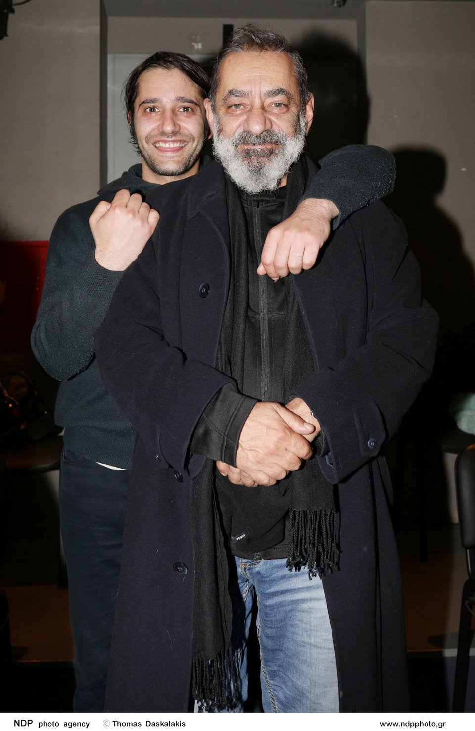 Μετά το τέλος της παράστασης, ο Γιώργος Καφετζόπουλος πόζαρε χαμογελαστός αγκαλιά με τον πατέρα του.