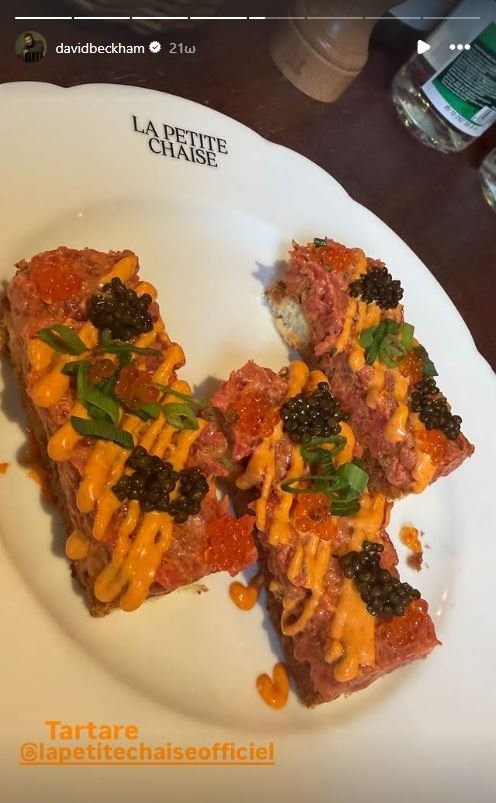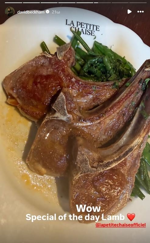 Συγκεκριμένα, ο Ντέιβιντ Μπέκαμ απόλαυσε χειροποίητο ταρτάρ αξίας 28 ευρώ και πατάτες τηγανητές των 8 ευρώ. Επίσης, δεν παρέλειψε να δείξει τα αρνίσια παϊδάκια, τη σούπα των 15 ευρώ και το φιλέτο μοσχαριού με κρεμώδη σάλτσα, αξίας 45 ευρώ, επαινώντας το στα social.