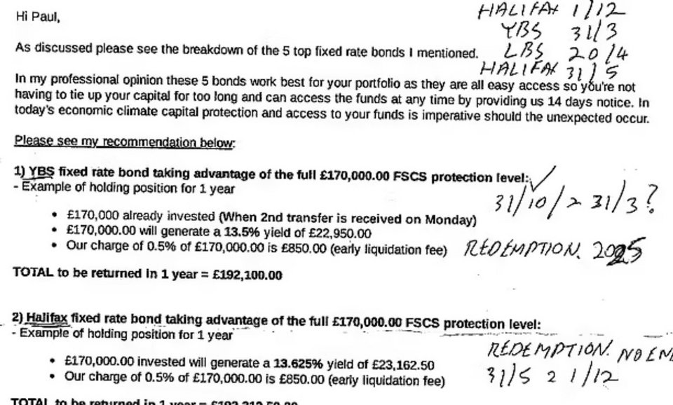 Νόμιζαν ότι τα χρήματά τους τοποθετούνταν σε ασφαλή εταιρικά ομόλογα που διαχειρίζονταν βρετανικές τράπεζες και κατασκευαστικές εταιρείες, επιτρέποντάς τους να ζουν από τα υποσχόμενα επιτόκια έως και 13%, διατηρώντας παράλληλα το κεφάλαιό τους ασφαλές.