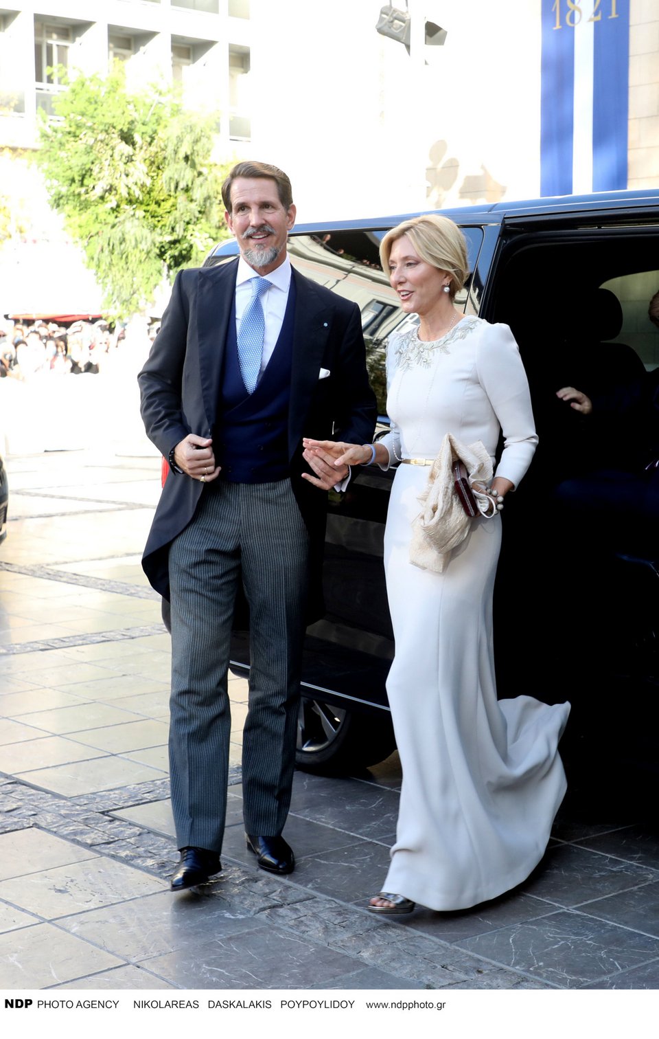 Ο Φίλιππος έφτασε στη Μητρόπολη συνοδευόμενος από την μητέρα του Άννα Μαρία, ενώ στον ναό κατέφθασε και ο τέως βασιλιάς Κωνσταντίνος.