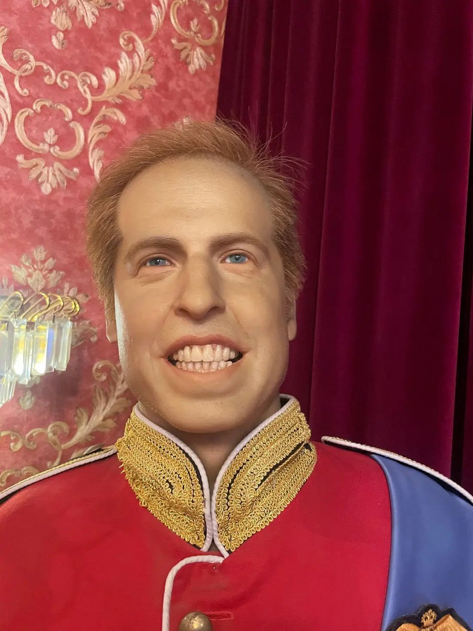 Το πρόσωπο του κέρινου ομοιώματος του πρίγκιπα φαίνεται να αντιστέκεται σε δυνατό άνεμο ή σε αέρα από πιστολάκι, τα μαλλιά του είναι τραβηγμένα προς τα πίσω και τα χείλη του ανοιχτά αποκαλύπτοντας τα δόντια του, σχολιάζεται σε δημοσιεύματα στο Διαδίκτυο, στα οποία αμφισβητείται η εμπειρία στην κηροπλαστική του δημιουργού των φιγούρων.