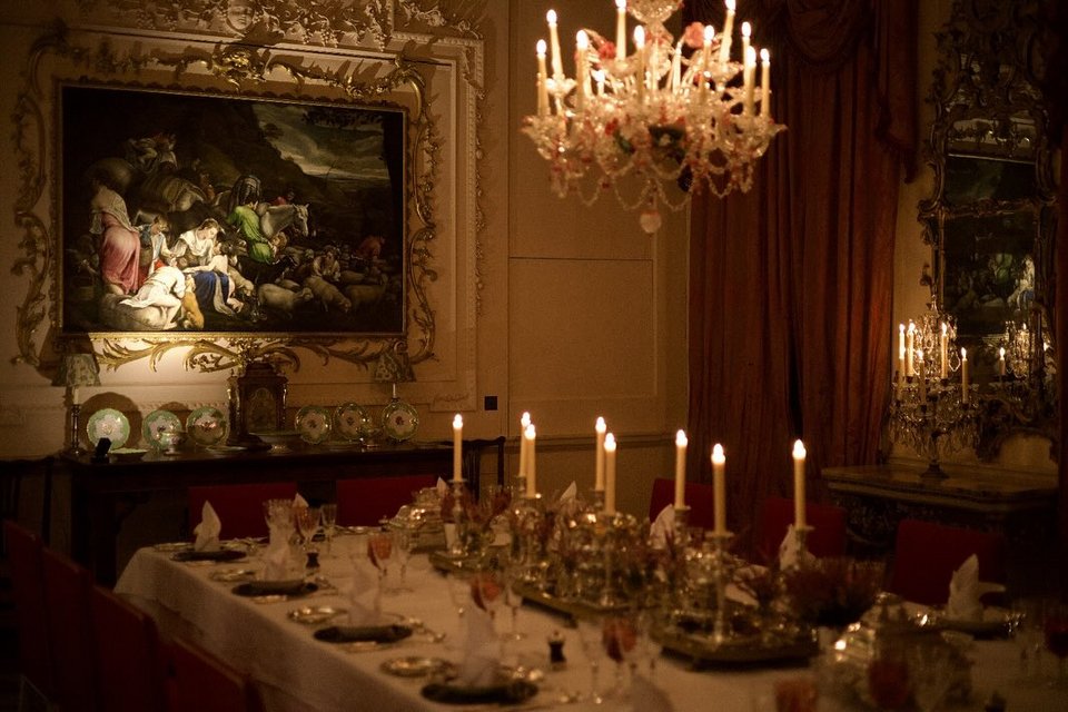 Τα πολυτελή γεύματα σερβίρονται στη ροζ τραπεζαρία της έπαυλης, που φημολογείται πως είναι αγαπημένος χώρος του βασιλιά Καρόλου. Το δωμάτιο διαθέτει ως κεντρικό του στολίδι έναν ροζ πολυέλαιο Murano, που χρονολογείται από το 1760.