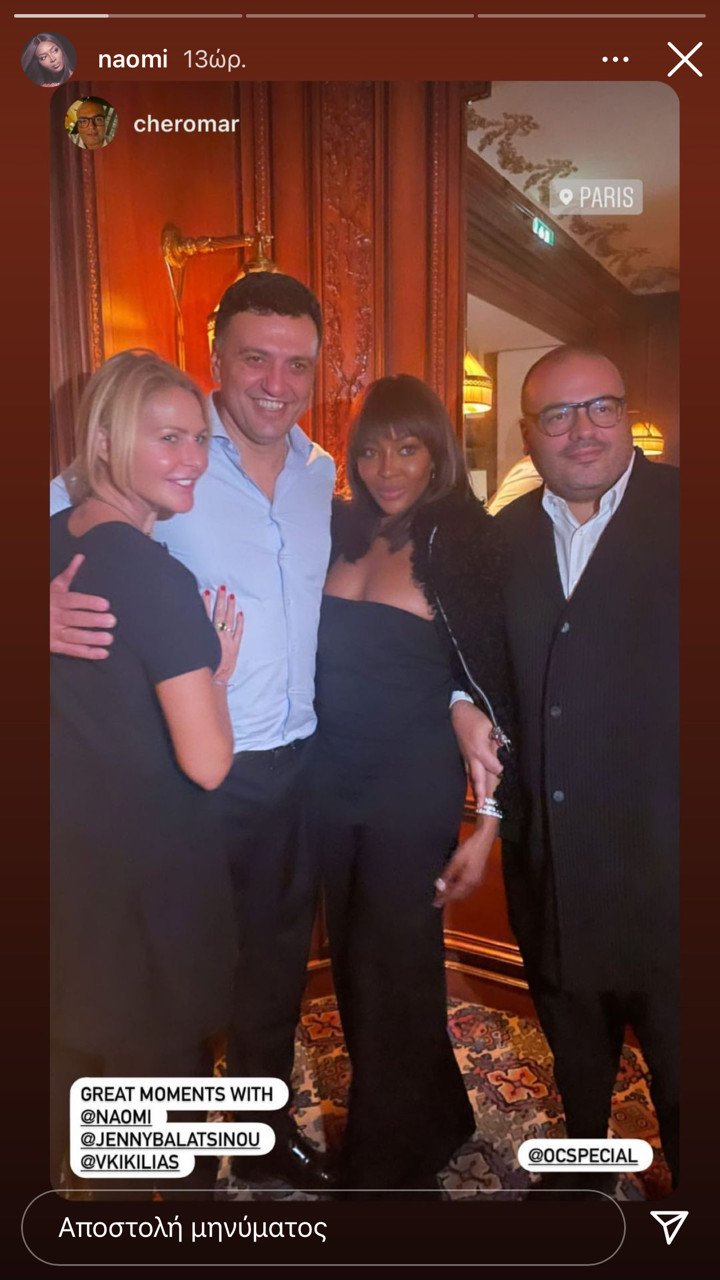 Ο Υπουργός Τουρισμού Βασίλης Κικίλιας και η Τζένη Μπαλατσινού συναντήθηκαν με τη Ναόμι Κάμπελ σε εστιατόριο του Παρισιού όπου δείπνησαν το βράδυ της Τετάρτης.