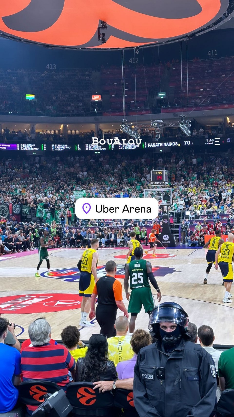 Αργότερα, έβγαλε μερικές φωτογραφίες μέσα από το γήπεδο Uber Arena στο Βερολίνο, όπου και είδε την ομάδα του να κερδίζει και να περνάει στον μεγάλο τελικό της Euroleague.