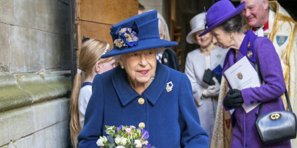 Ευδιάθετη, ντυμένη σε αποχρώσεις του μπλε και κρατώντας ένα μπουκέτο λουλούδια στα χέρια, η βασίλισσα Ελισάβετ επισκέφθηκε την Τρίτη το Αβαείο του Γουεστμίνιστερ.