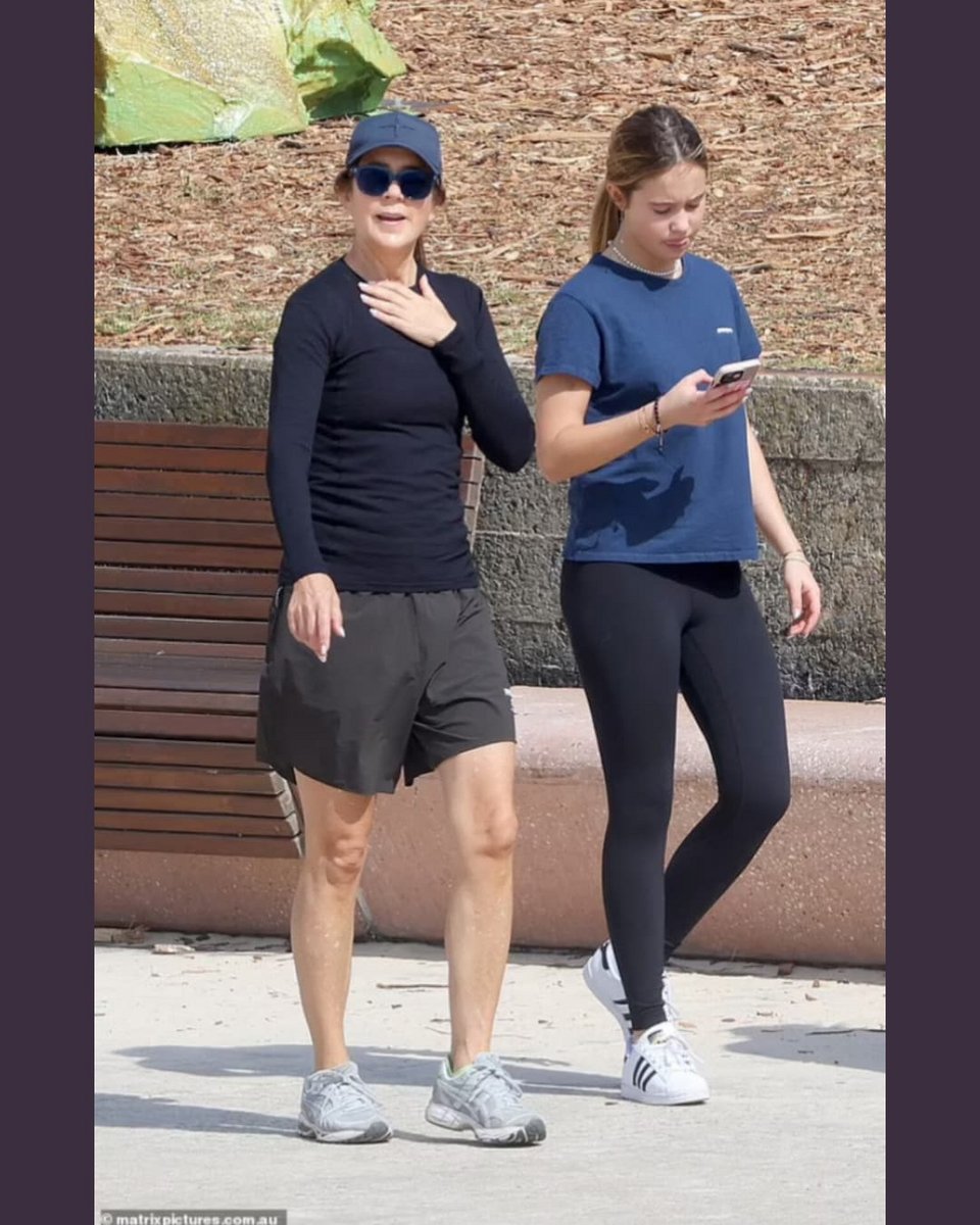 Η βασίλισσα Μαίρη εθεάθη χθες στην παραλία Bronte με την 13χρονη κόρη της, φορώντας αθλητικά ρούχα, ένα μαύρο σορτς, μια μακρυμάνικη μπλούζα, καπέλο, γυαλιά ηλίου και λευκά sneakers.