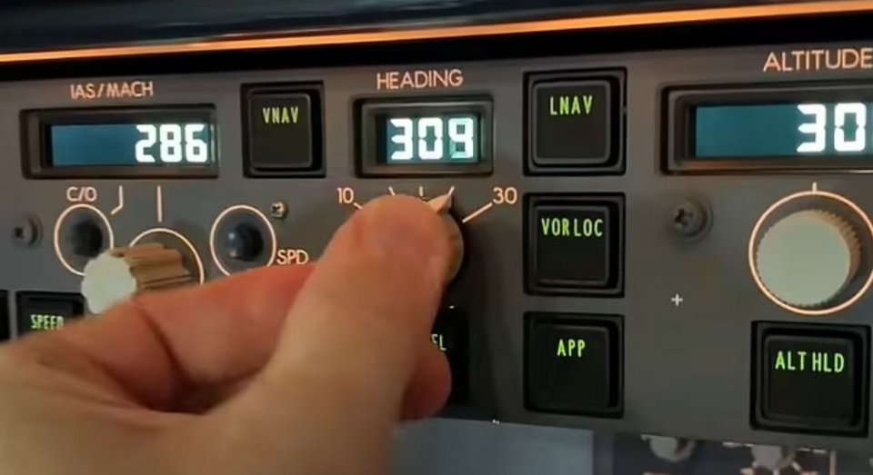 Εδώ ο Πίτερ κατεβάζει το «παράθυρο υψομέτρου» στα 3.000 πόδια χρησιμοποιώντας ένα κουμπί κάτω από την ένδειξη. Για να δώσετε εντολή στο αεροπλάνο να κατέβει, πατάτε το κουμπί « LVL CHG» (αλλαγή επιπέδου). Το αεροσκάφος θα μειώσει τώρα την ώθηση και τα κατέβει.