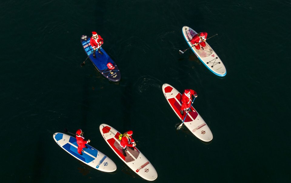 Το κάλεσμα ήταν ανοιχτό και η ανταπόκριση μεγάλη. Δεκάδες άνθρωποι με στολές Άι-Βασίλη μπήκαν στα νερά του Θερμαϊκού πάνω στις σανίδες SUP, χαρίζοντας μια πραγματικά όμορφη και εντυπωσιακή εικόνα, γεμάτη από ανεμελιά και χριστουγεννιάτικη διάθεση.