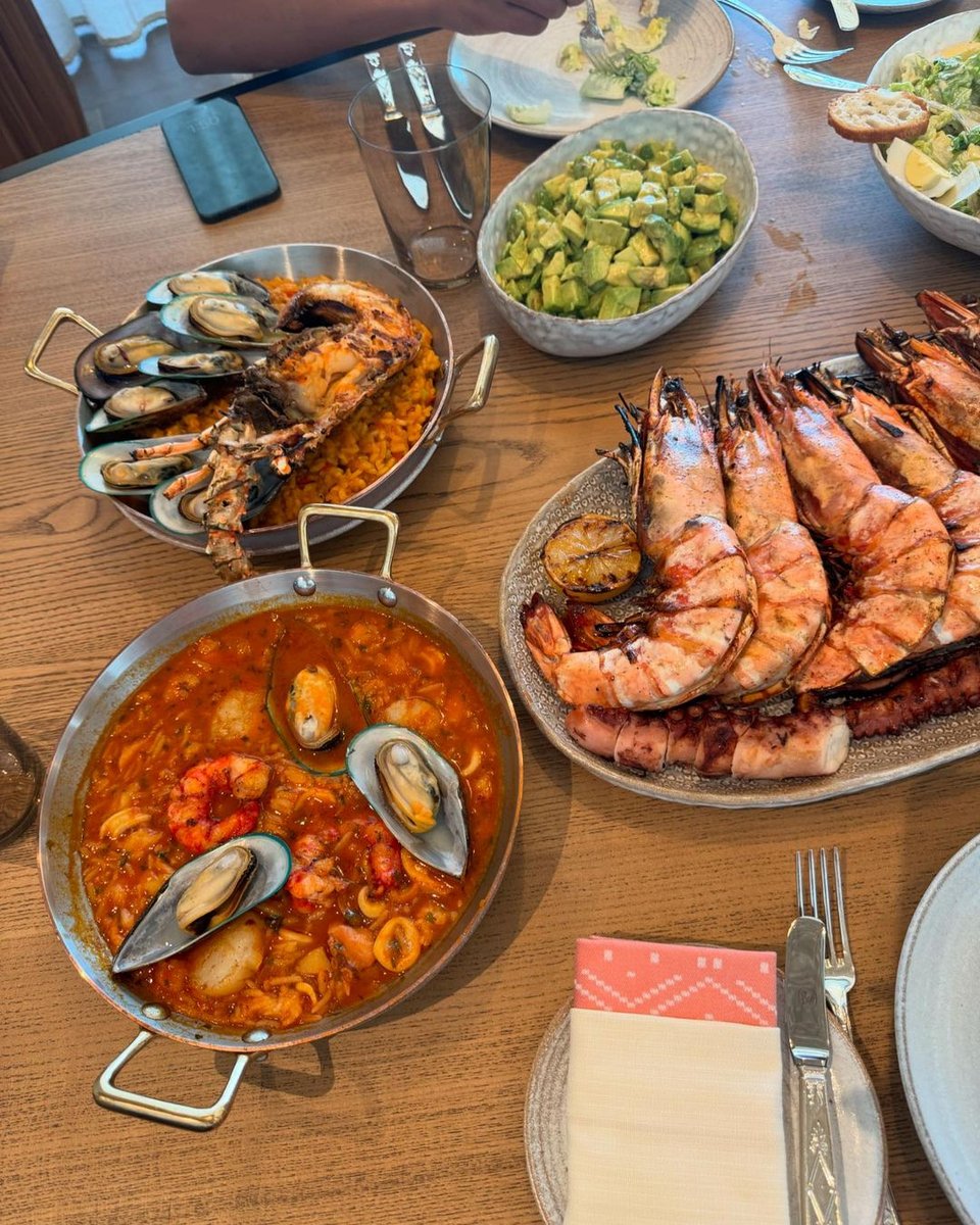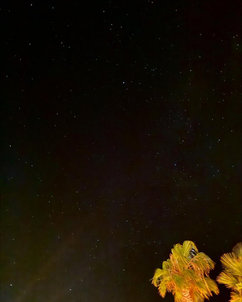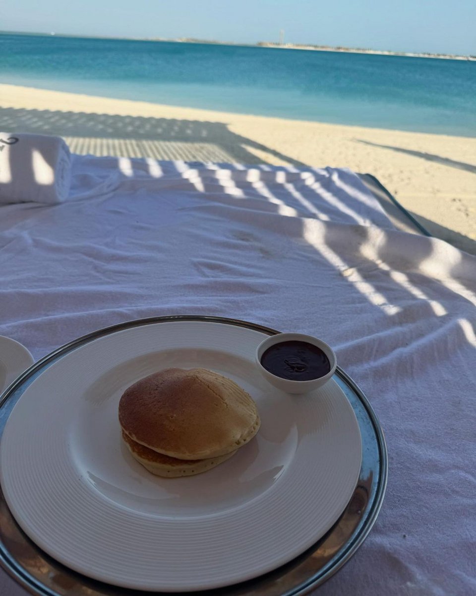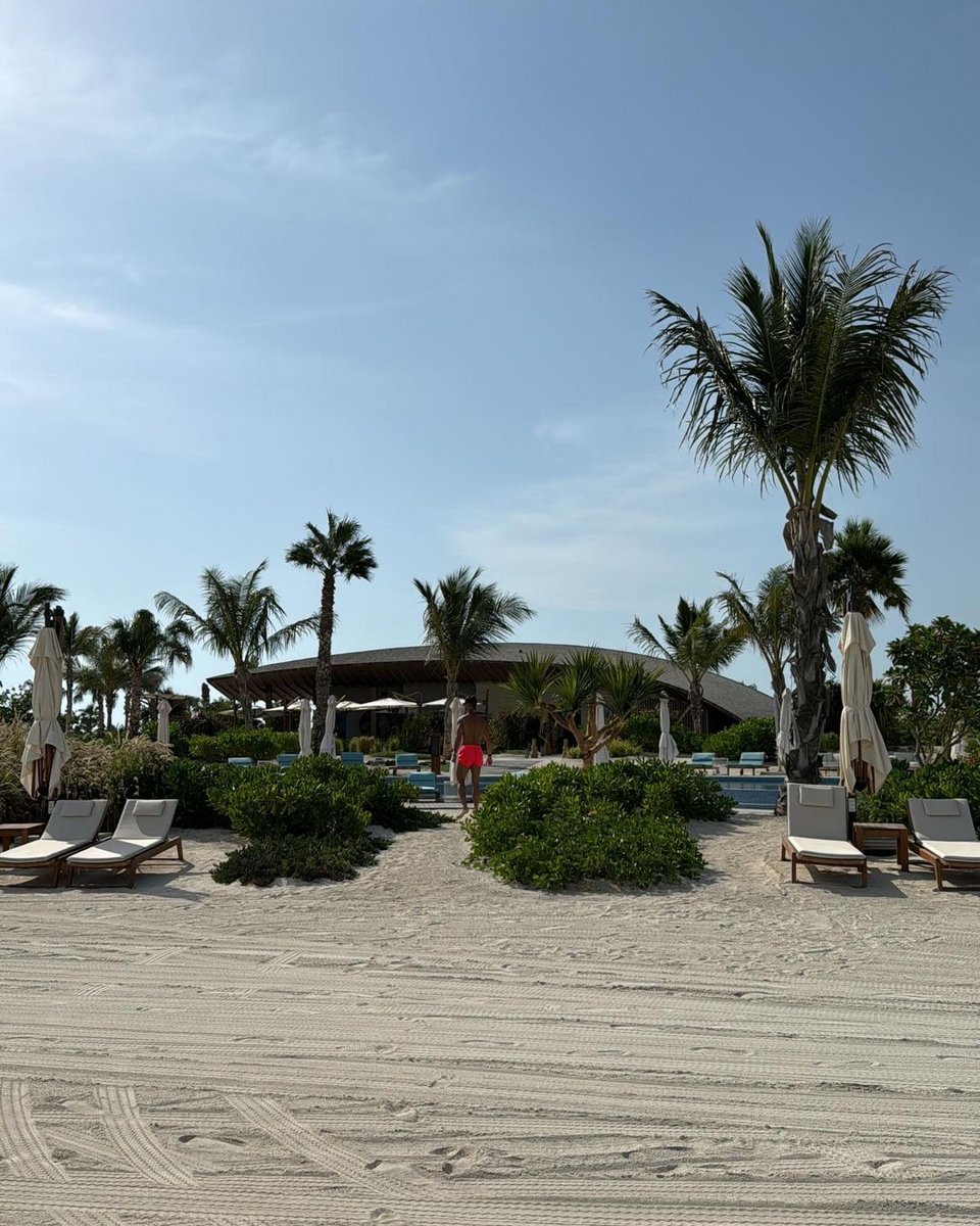 Σε άλλη φωτογραφία την βλέπουμε να τρέχει στην άμμο ενώ δείχνει τα πλούσια φαγητά που απολαμβάνουν στις διακοπές τους, το πολυτελές θέρετρο όπου διαμένουν αλλά και τον έναστρο ουρανό.