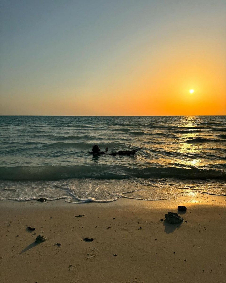 Ακόμη, φωτογράφησε τον αγαπημένο της με μαγιό να κοιτά την θάλασσα την ώρα του ηλιοβασιλέματος.