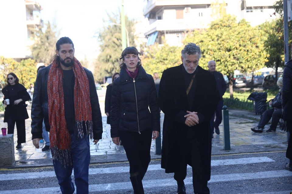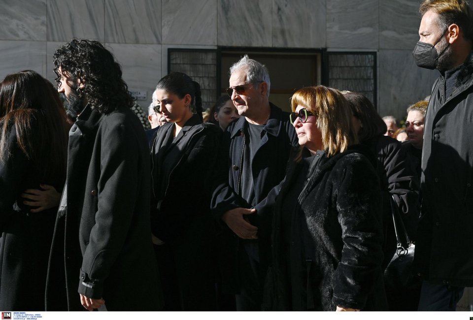 Τραγική φιγούρα η μητέρα του ηθοποιού, η οποία ακολουθούσε το φέρετρο υποβασταζόμενη από τον αδελφό του ηθοποιού, αλλά και ο 27χρονος γιος του, Φοίβος Ήμελλος.