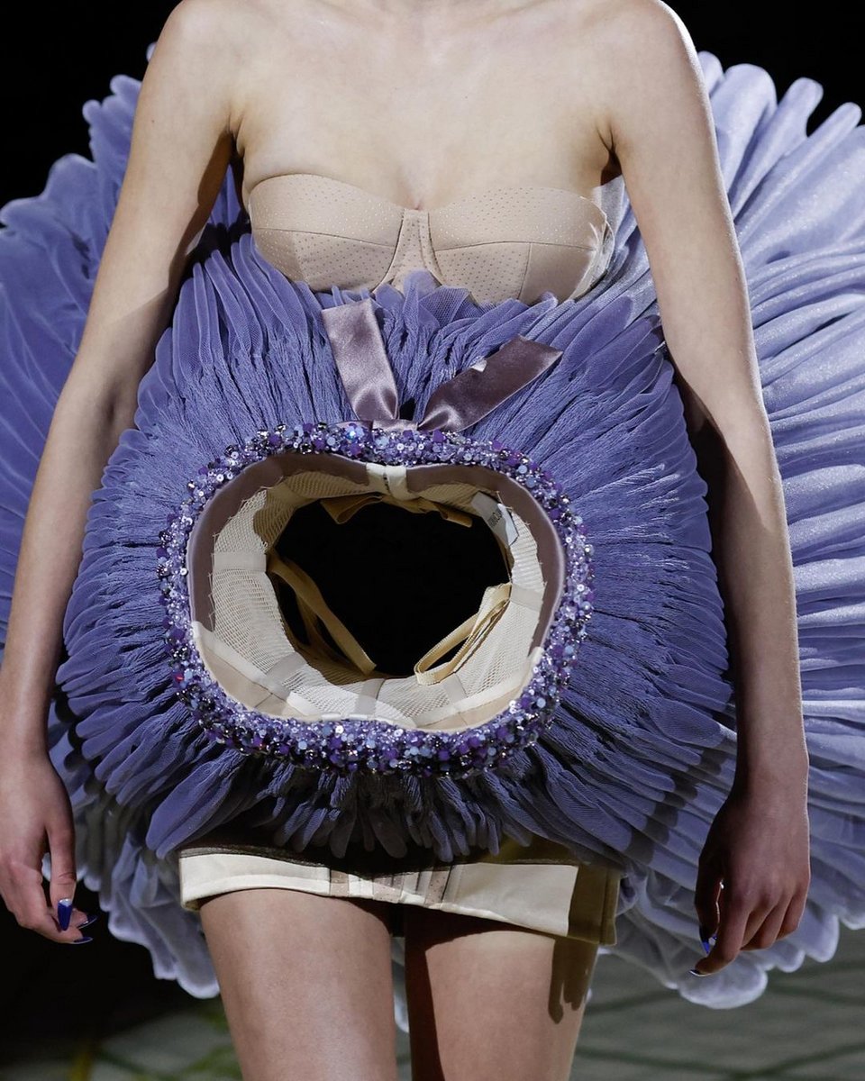 Τι έκανε; Ο οίκος μόδας έστειλε στην πασαρέλα 18 εντυπωσιακά, ογκώδη φορέματα, τα οποία όμως δεν φορέθηκαν όλα με τον παραδοσιακό τρόπο. Κάποια ήταν ελαφρώς παραμορφωμένα, σαν κάποιος χρήστης που έπαιζε ένα ψηφιακό παιχνίδι με ντυσίματα να είχε αποθηκεύσει πολύ νωρίς και να έχασε το σώμα κατά μερικά εκατοστά. Άλλα ήταν εντελώς στραβά, κάθετα στο σώμα ή ακόμη και τελείως ανεστραμμένα.