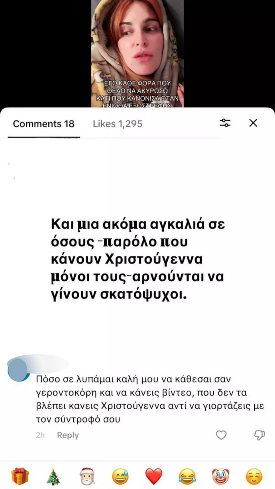 «Πόσο σε λυπάμαι καλή μου, να κάθεσαι σαν γεροντοκόρη και να κάνεις βίντεο, που δεν τα βλέπει και κανείς Χριστούγεννα. Αντί να γιορτάζεις με τον σύντροφό σου», της έγραψε.