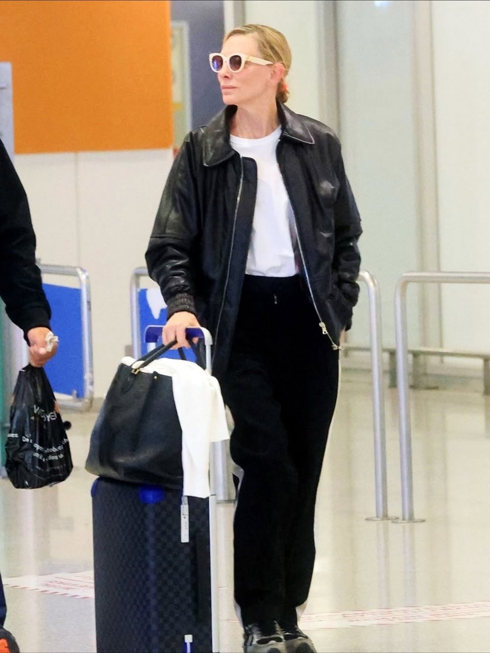 Η σταρ του Χόλιγουντ προσπάθησε να κρατήσει χαμηλό προφίλ κι εμφανίστηκε με ένα διακριτικό λουκ, που αποτελούνταν από μία μαύρη φόρμα, δερμάτινο τζάκετ και αθλητικά παπούτσια.