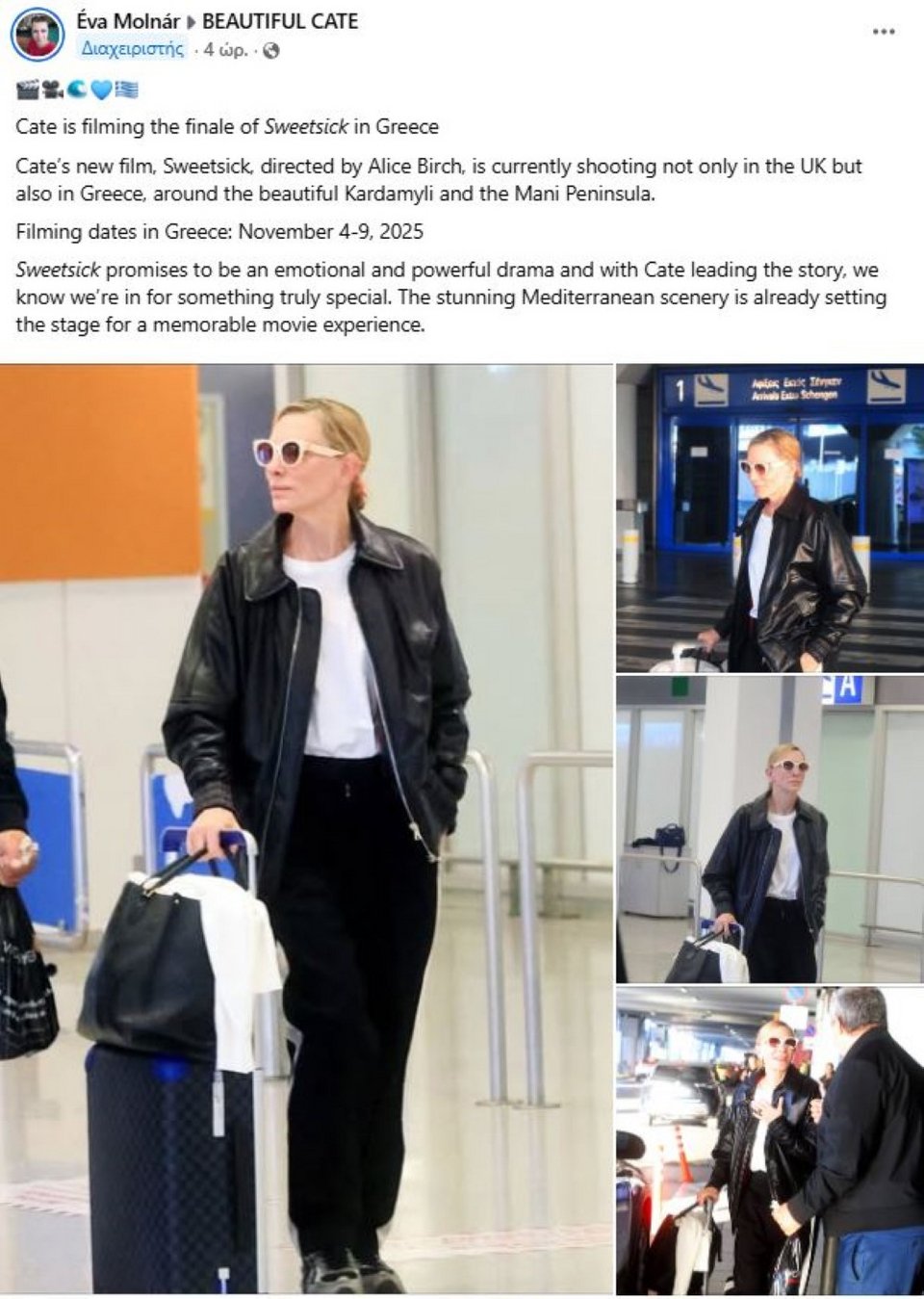 Στην Ελλάδα βρίσκεται η Κέιτ Μπλάνσετ, προκειμένου να πραγματοποιήσει γυρίσματα για τη νέα της ταινία «Sweetsick».