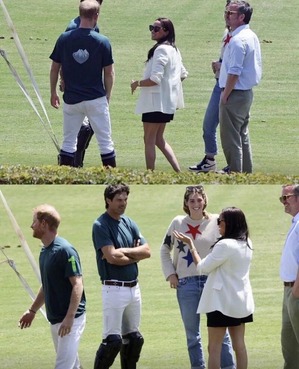 Στις φωτογραφίες που κυκλοφόρησαν στο Instagram, η Μέγκαν Μαρκλ δείχνει χαρούμενη και χαλαρή καθώς συνομιλεί με τον σύζυγό της και τον στενό του φίλο Νάτσο Φιγκέρας, ο οποίος είναι επαγγελματίας παίκτης πόλο και πρόσωπο της Ralph Lauren.
