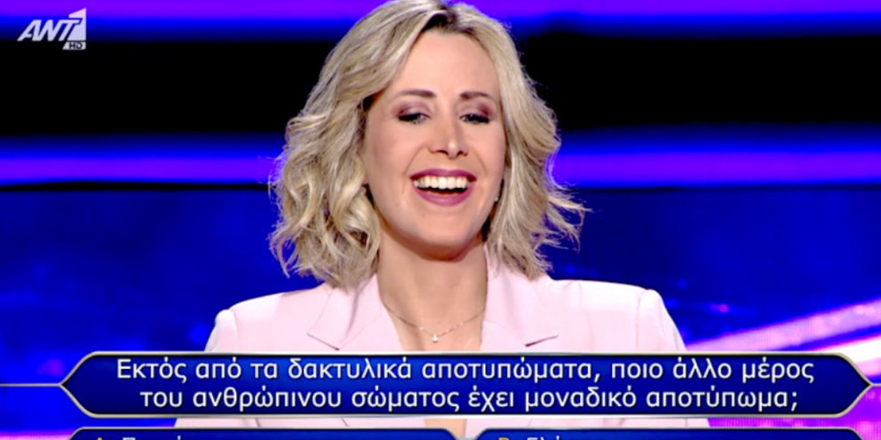 Ποια είναι αυτή; «Εκτός από τα δακτυλικά αποτυπώματα, ποιο άλλο μέρος του ανθρώπινου σώματος έχει μοναδικό αποτύπωμα;», κλήθηκε να απαντήσει η παίκτρια.