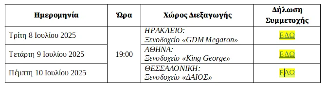 | 20:15-21:00 | Πληροφορίες – Υποβολή αιτήσεων |