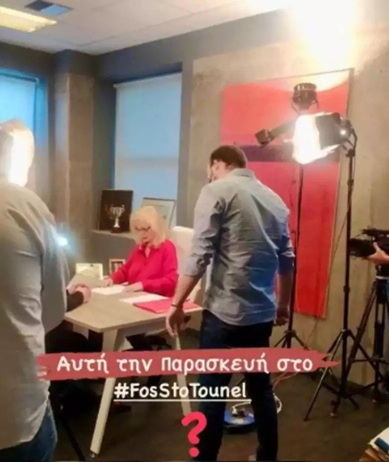 Η δημοσιογράφος ανέβασε μια φωτογραφία στα instastories, στην οποία απεικονίζεται να παίρνει συνέντευξη από έναν άντρα, που δε διακρίνεται ποιος είναι, καθώς τον κρύβουν οι συνεργάτες της.