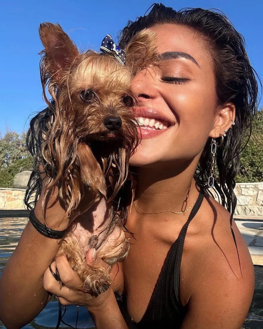 «Γεια σου Paroooooos», έγραψε σε μια λεζάντα όπου κρατάει γκαλιά το σκυλάκι της.