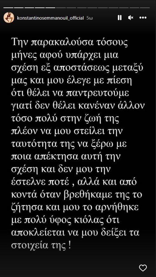 Ο Κωνσταντίνος Εμμανουήλ θέλησε να απαντήσει στα όσα είδαν το φως της δημοσιότητας και το έπραξε μέσω του προσωπικού του λογαριασμού στο Instagram, όπου δημοσίευσε μια σειρά από stories.