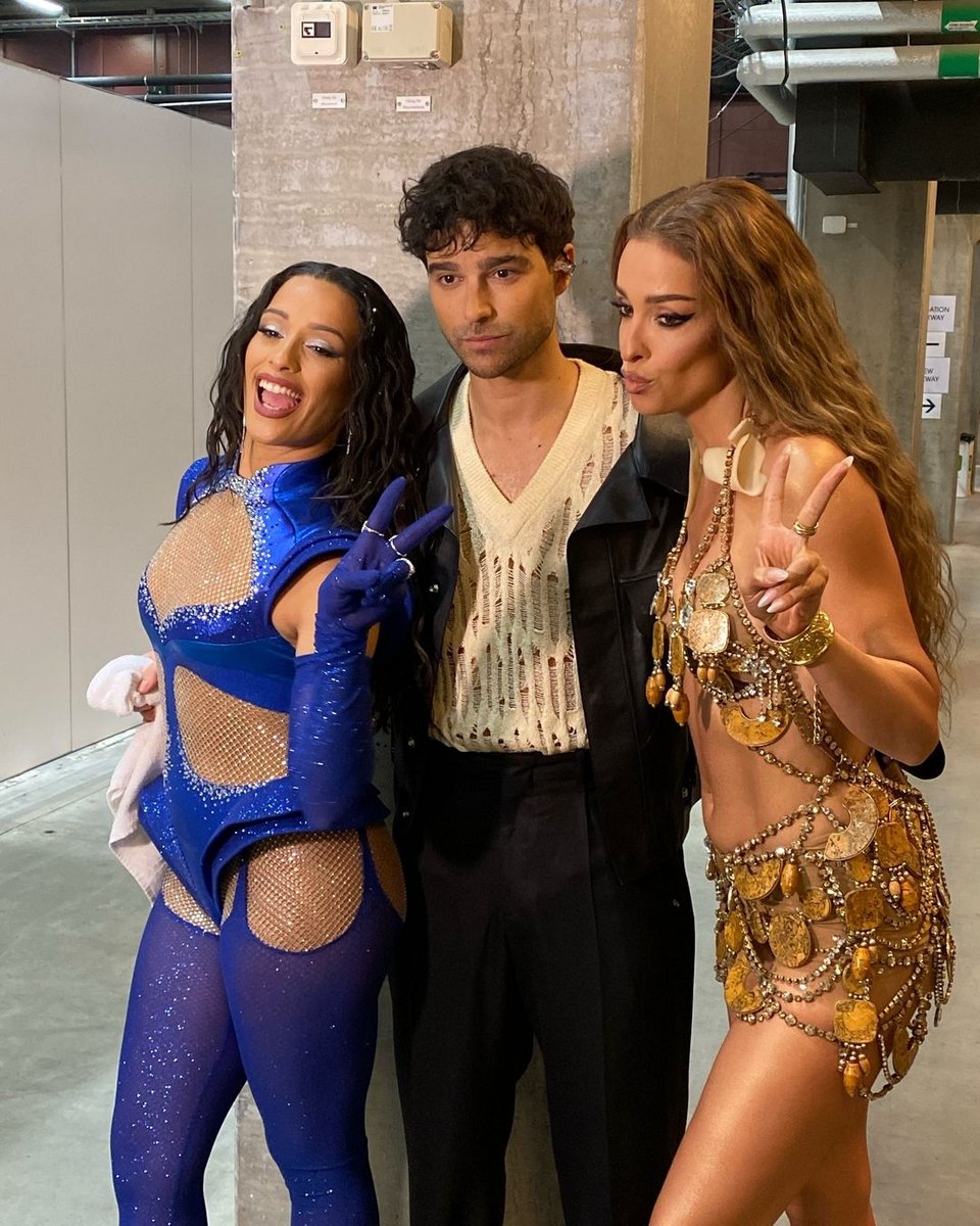 Ο Saade πλαισιώθηκε από την Ελένη Φουρέιρα, η οποία ήρθε δεύτερη το 2018 με την Κύπρο, και τη Chanel, που τερμάτισε τρίτη για την Ισπανία το 2022, όταν εμφανίστηκε με την καφίγια τυλιγμένη στον καρπό του σε καθαρή θέα.