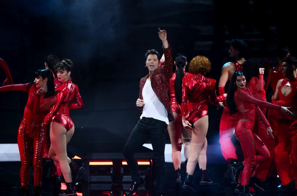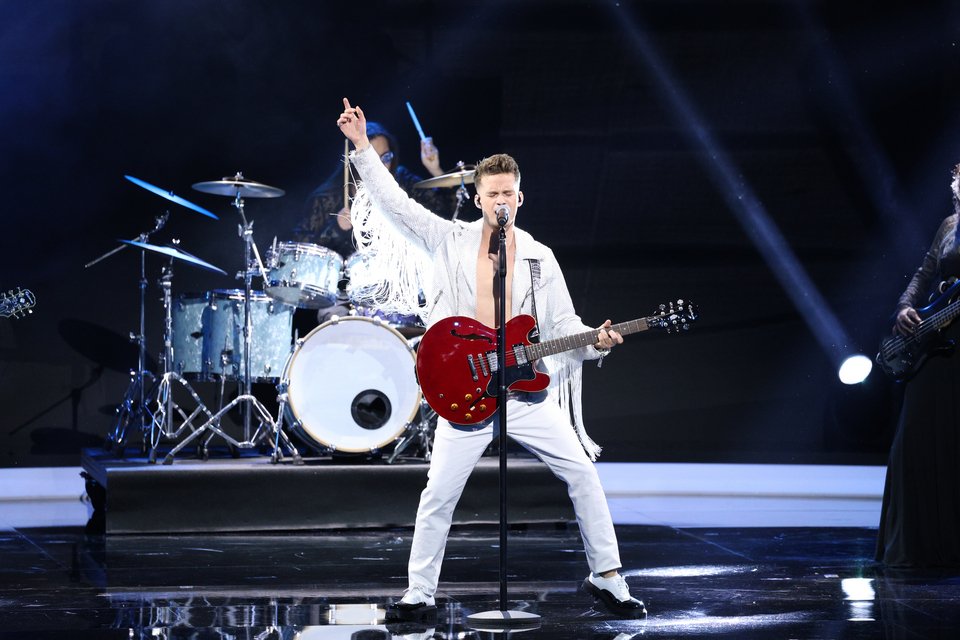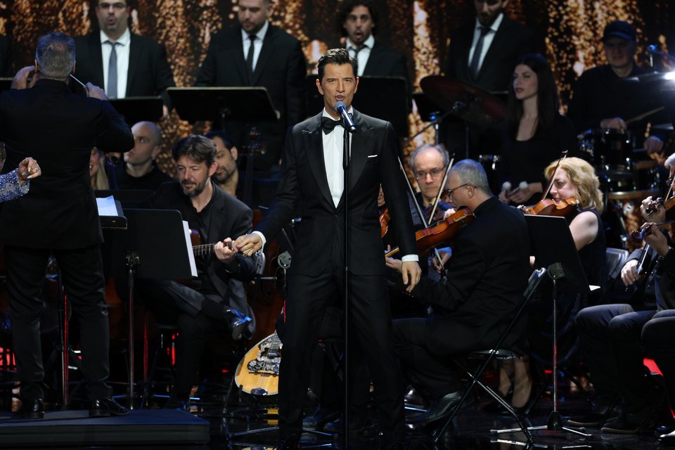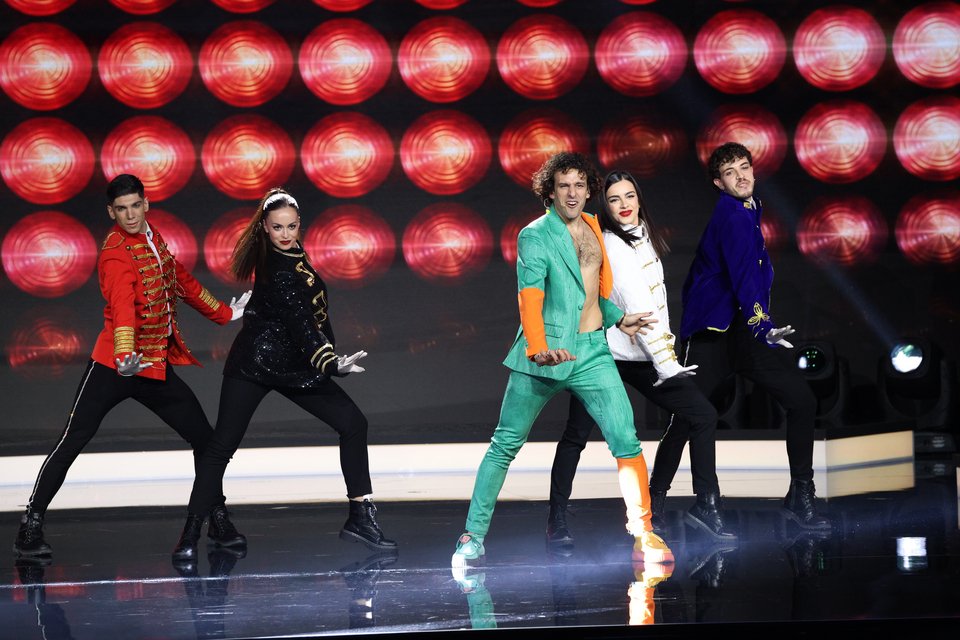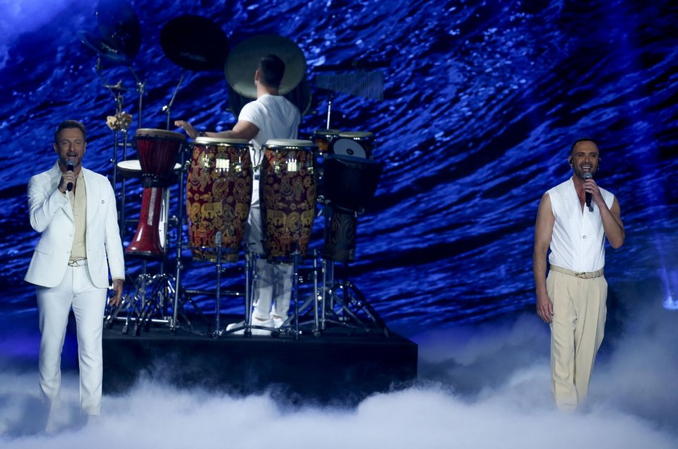Παπαρίζου και Ρουβάς συνέχισαν το σόου με το «Hold me now», του Τζόνι Λόγκαν, του πιο πετυχημένου τραγουδιστή στην ιστορία του θεσμού, για να πάρει σειρά το «Λίγο κρασί, λίγο θάλασσα και το αγόρι μου», της Μαρινέλλας.