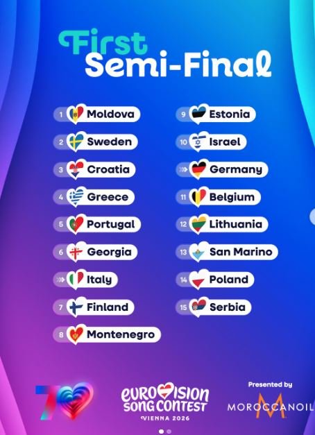 Η σειρά που θα εμφανιστούν οι διαγωνιζόμενοι στους δύο ημιτελικούς της Eurovision, έγινε γνωστή.