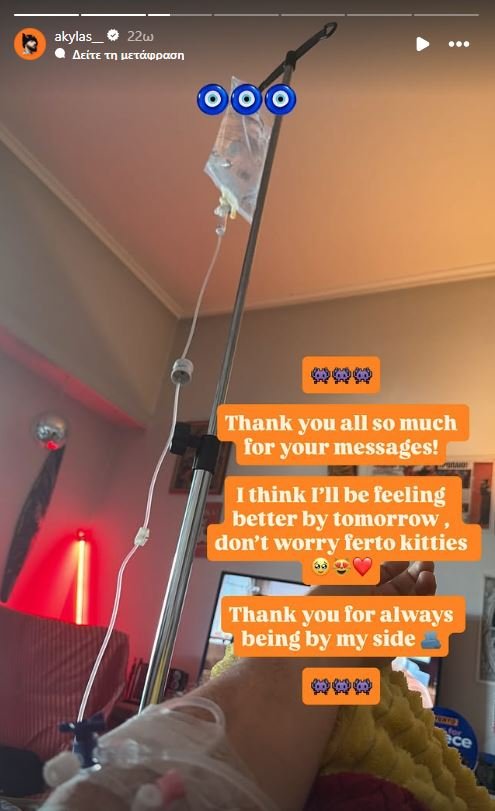 Akylas: Με ορό στο χέρι μετά την περιπέτεια με την υγεία του