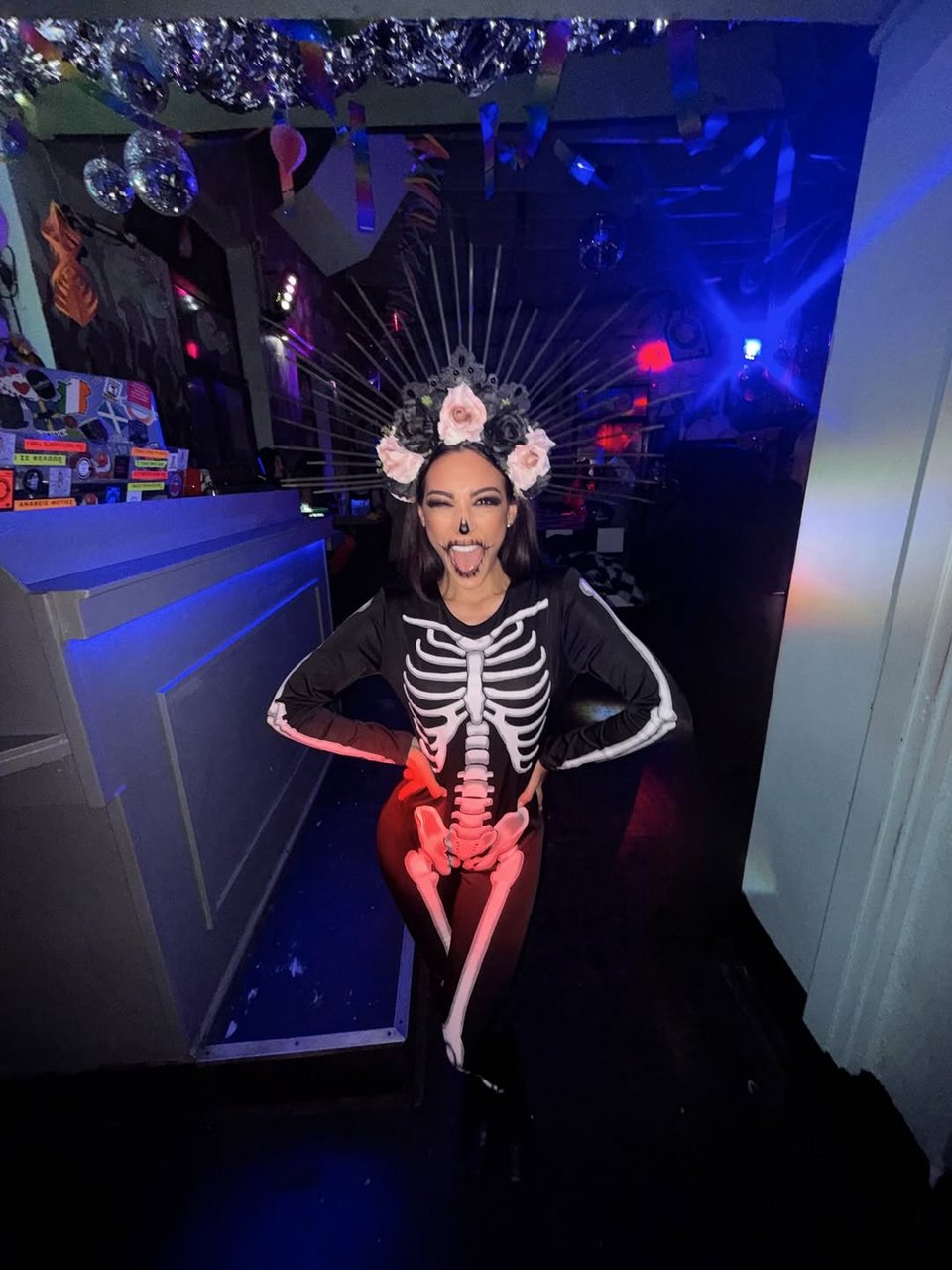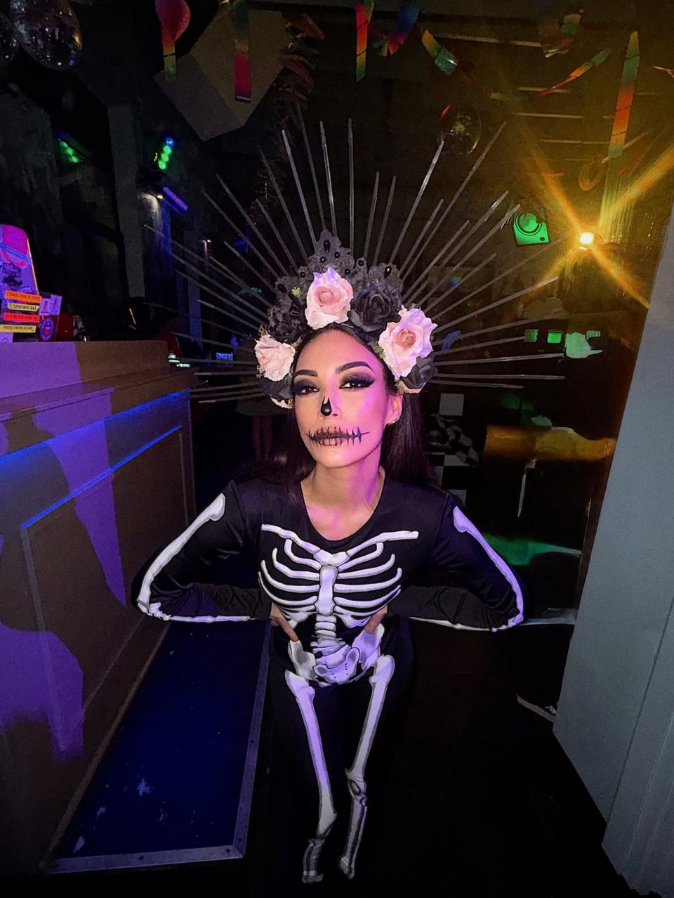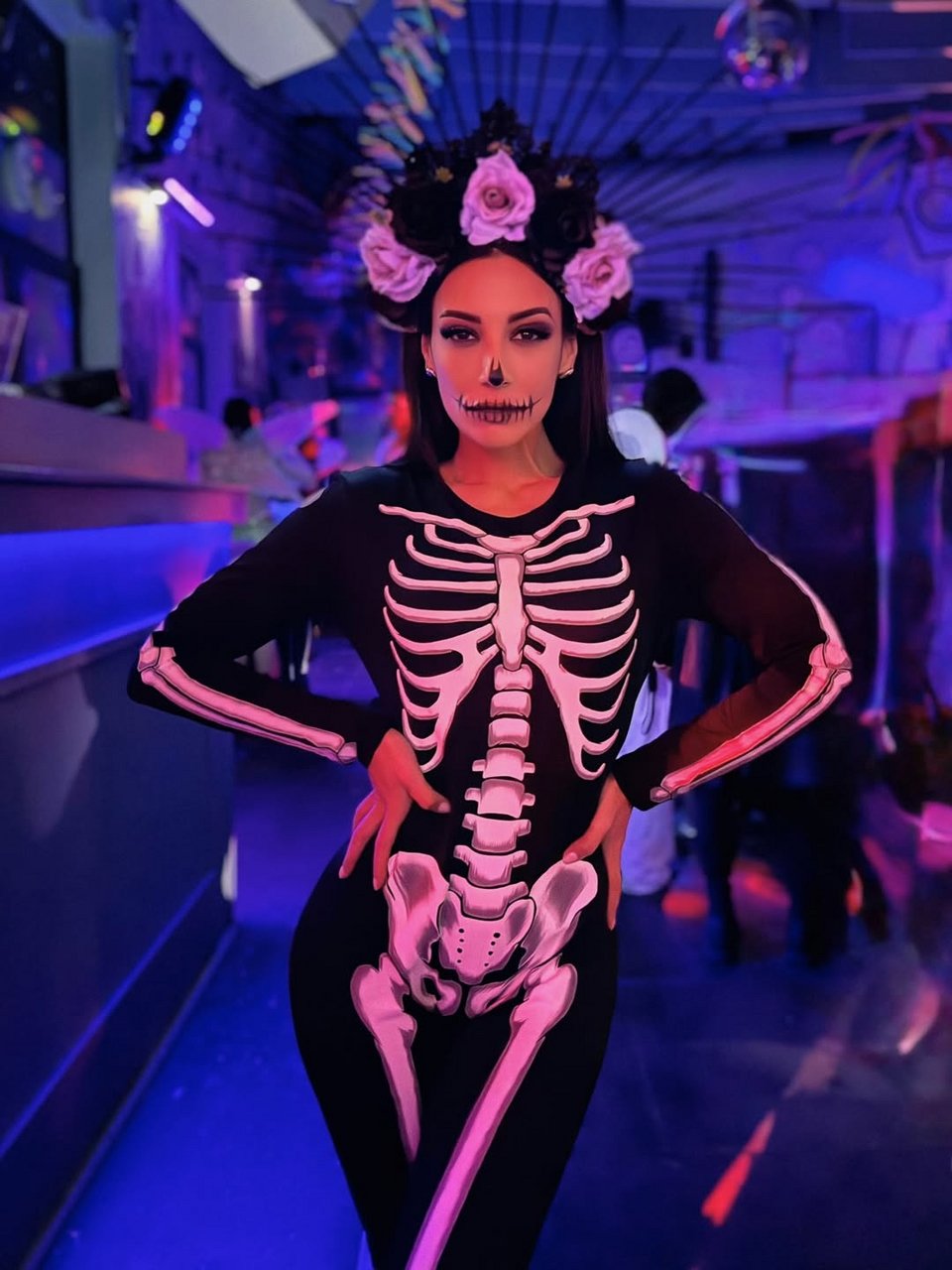 Η ηθοποιός επέλεξε να ντυθεί σκελετός, εμπνευσμένη από την παραδοσιακή γιορτή «Ημέρα των Νεκρών», δημιουργώντας μια εντυπωσιακή εικόνα με το χαρακτηριστικό μακιγιάζ και ένα αξεσουάρ από λουλούδια που στόλιζε το κεφάλι της.