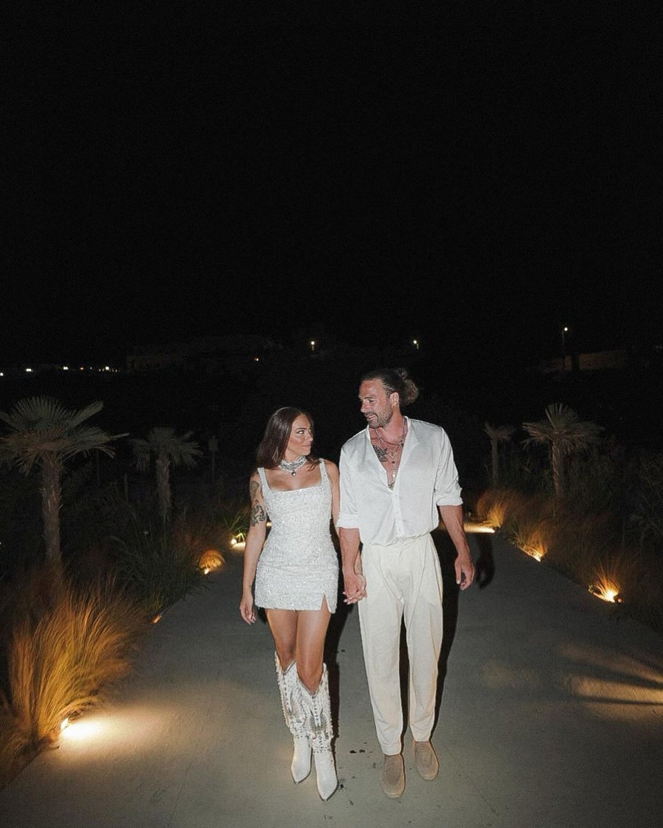 Η Ευρυδίκη Βαλαβάνη επέλεξε ένα λιτό slip dress και μακρύ πέπλο. Άκρως εντυπωσιακή ήταν και η εμφάνισή της στο πάρτι, όπου φόρεσε λαμπερό μίνι φόρεμα με cowboy boots.
