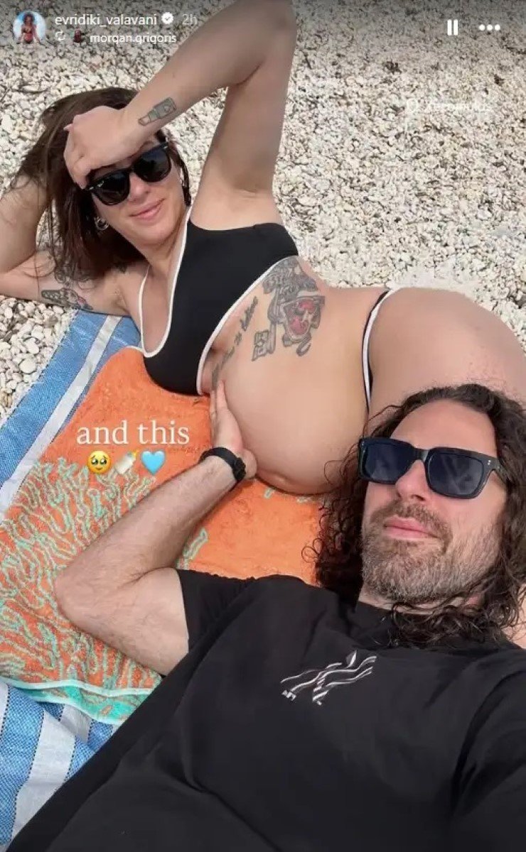 Το ζευγάρι βρίσκεται στην Εύβοια για να περάσει τις πασχαλινές του διακοπές και την Κυριακή του Πάσχα επισκέφτηκε μία παραλία. Μάλιστα, και οι δύο ανέβασαν μία φωτογραφία με την αθλητικογράφο να ποζάρει, έχοντας ξαπλώσει στην πετσέτα, την ώρα που ο Γρηγόρης Μόργκαν της κρατάει τη φουσκωμένη κοιλιά.