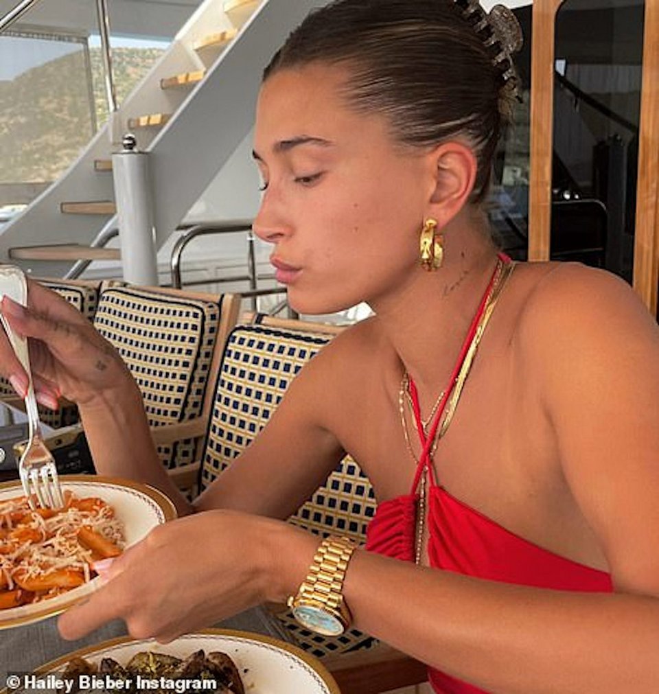 Στις φωτογραφίες βλέπουμε Χέιλι Μπάλντουιν και Τζάστιν Μπίμπερ να κάνουν μπάνιο, βόλτες και να τρώνε σε εστιατόρια και ταβέρνες. Σε μία από αυτές, η Χέιλι Μπάντουιν φαίνεται να φορά ένα κόκκινο φόρεμα και να κρατά μια μακαρονάδα στα χέρια.